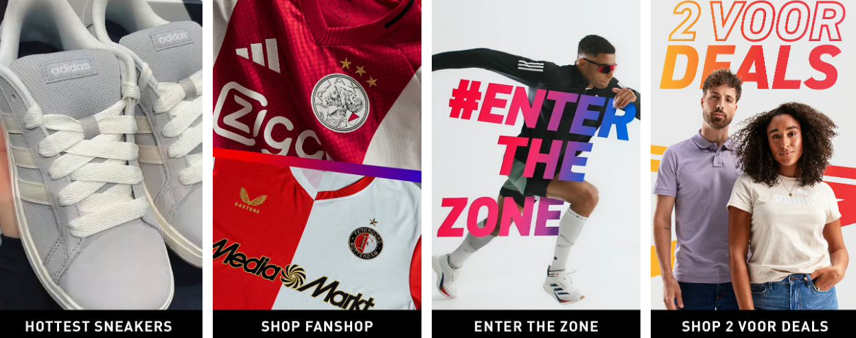 Met een ruim assortiment aan topmerken, uitstekende service- en garantievoorwaarden is deze winkel bij uitstek dé specialist in onder andere voetbal, tennis, running, fitness, outdoor, zwemmen, wintersport en hockey. Ruim 4000m2 winkeloppervlakte met de meeste hoogwaardige kwaliteit sportartikelen.